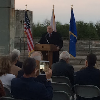 | The memorial begins. You can see launch Pad 37 in the background.The International Space Station flew overhead during the memorial. |